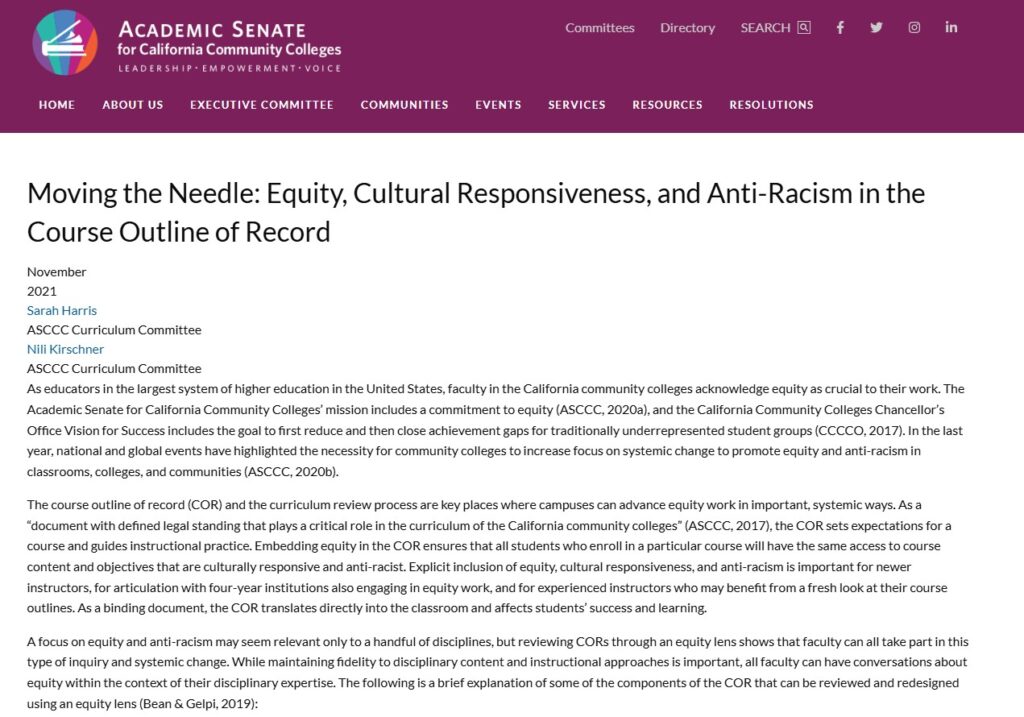 Moving the Needle: Equity, Cultural Responsiveness, and Anti-Racism in the Course Outline of Record